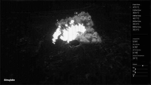 - High-Fidelity Sensor Artifacts : Simulates essential hardware characteristics, including NETD (Noise), Dynamic AGC (Automatic Gain Control), and Thermal Blooming for maximum sensor realism.